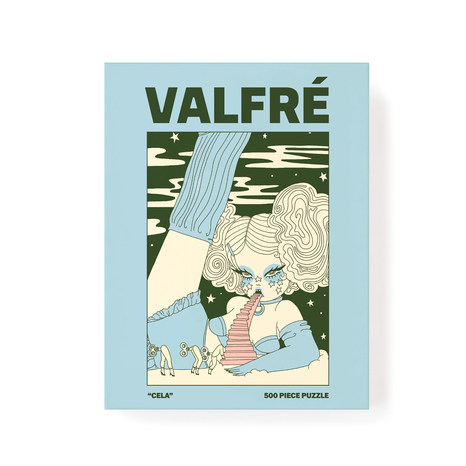 This 500 piece puzzle features Valfre's original artwork titled "Cela Garden"
