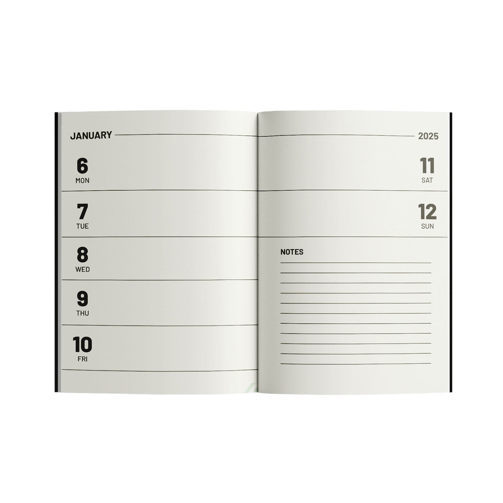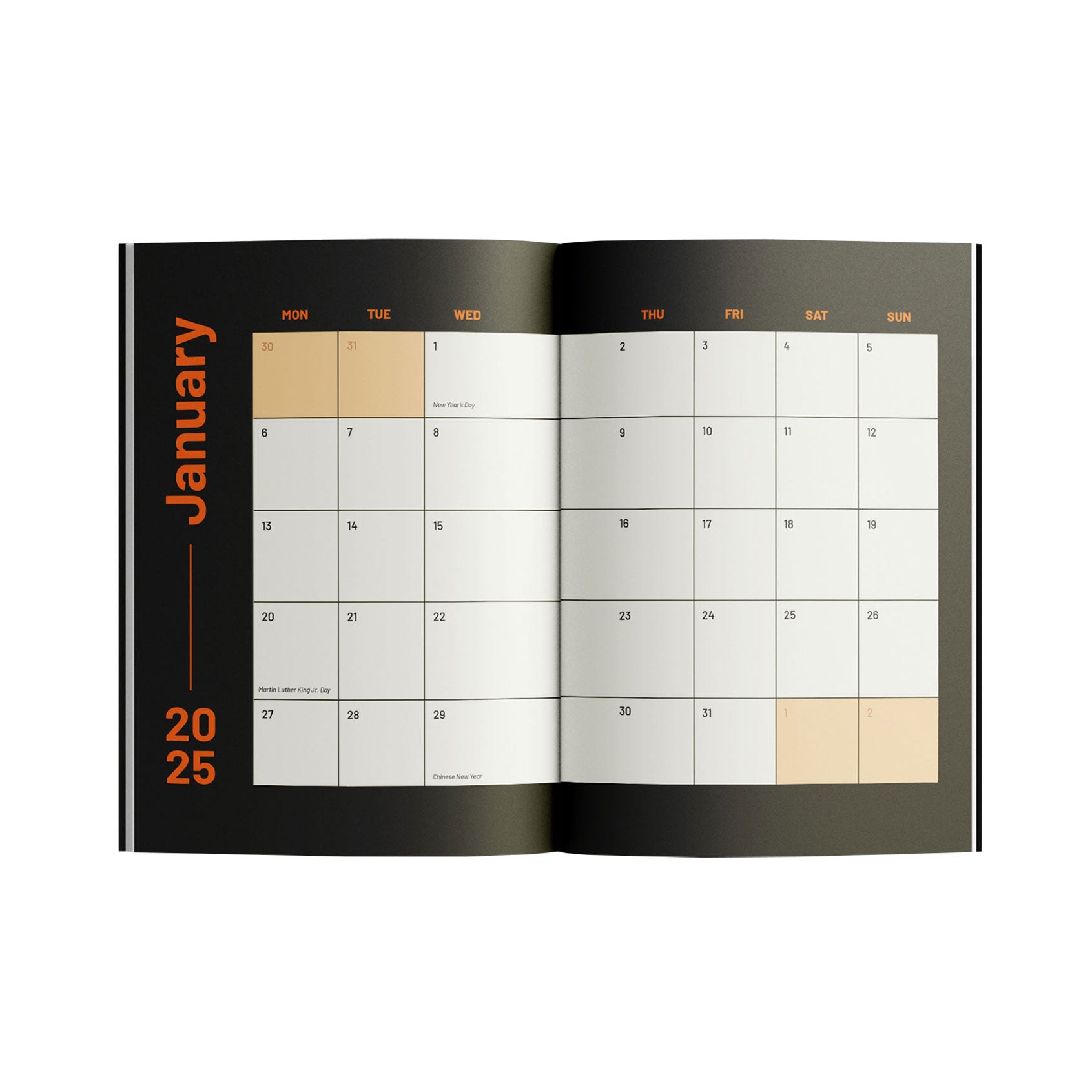 The new Valfré 2025 Gal With A Plan hard cover planner includes original Valfre artwork for each month of the year, stickers, a monthly and weekly calendar and extra pages for notes.