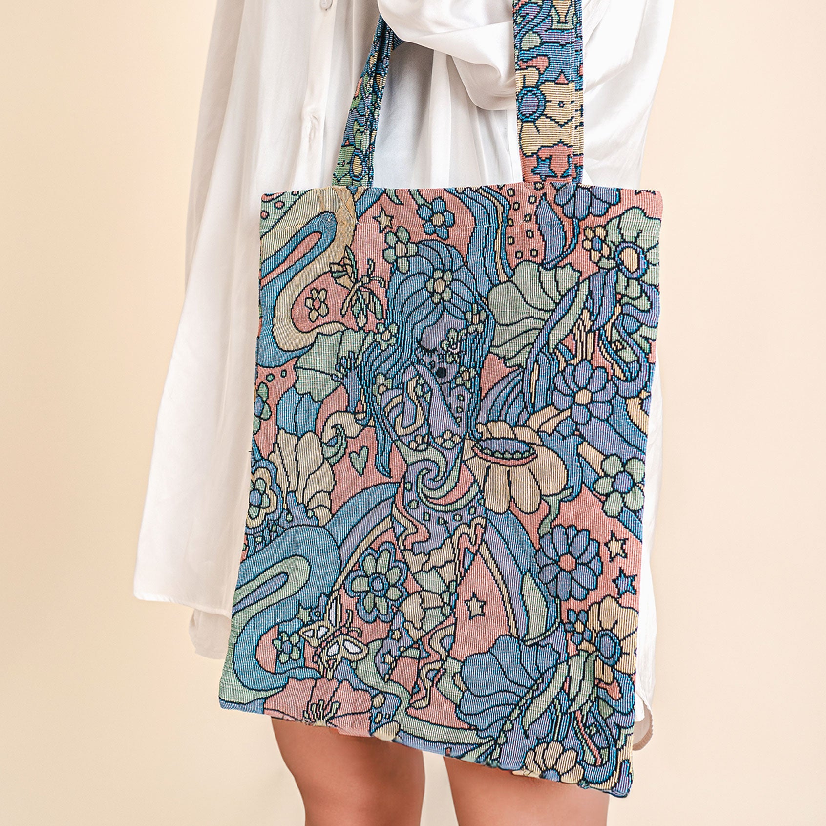 This limited edition woven tote bag features original Atlantis artwork by Ilse Valfré