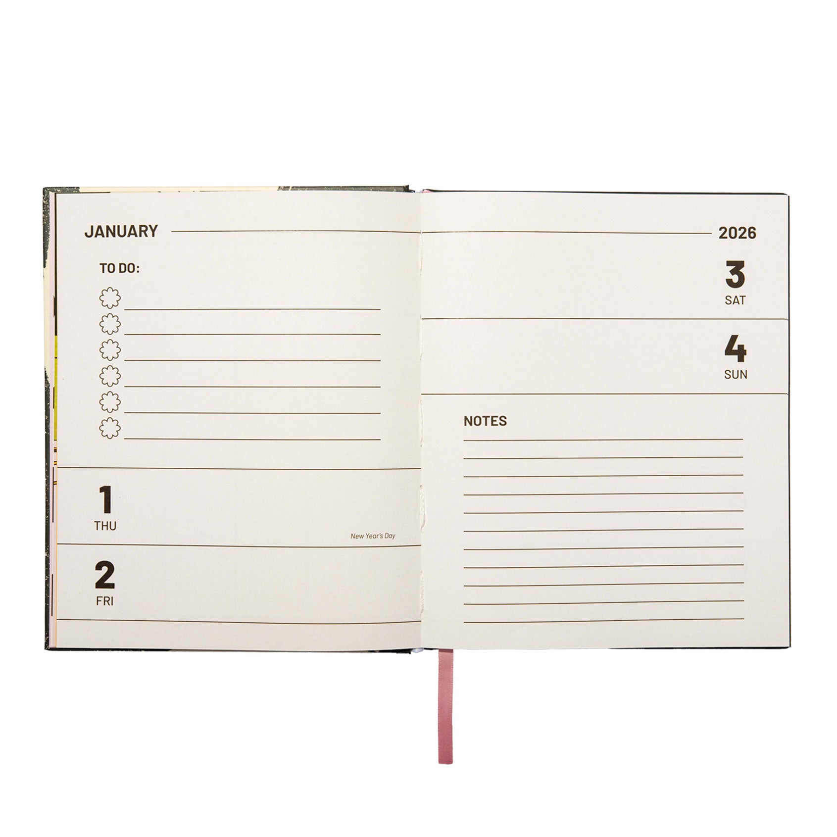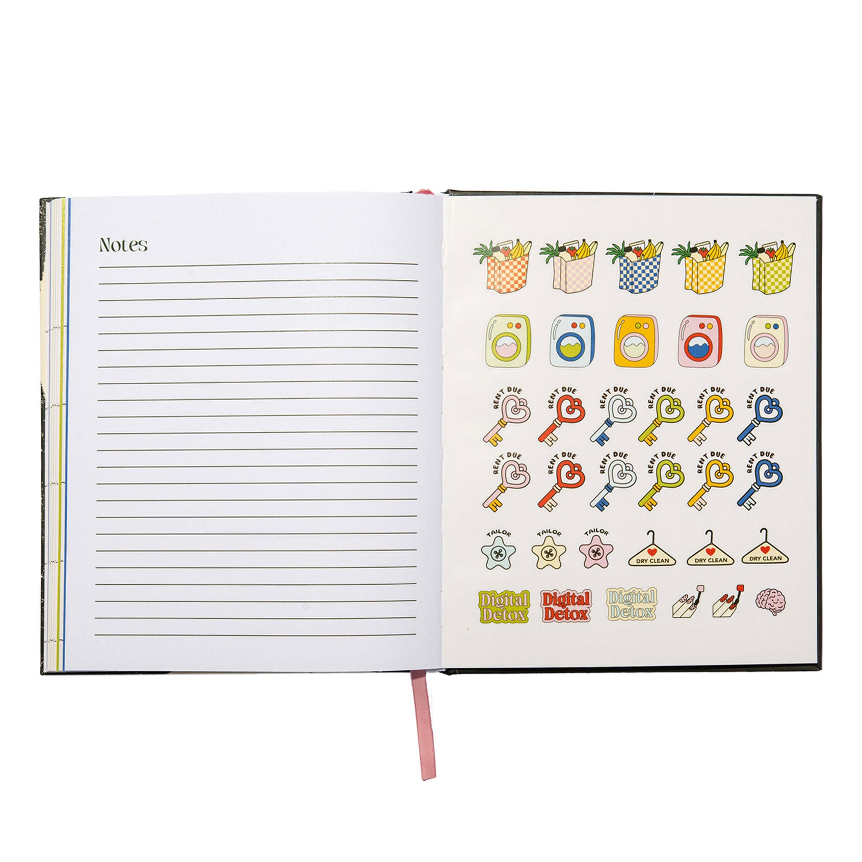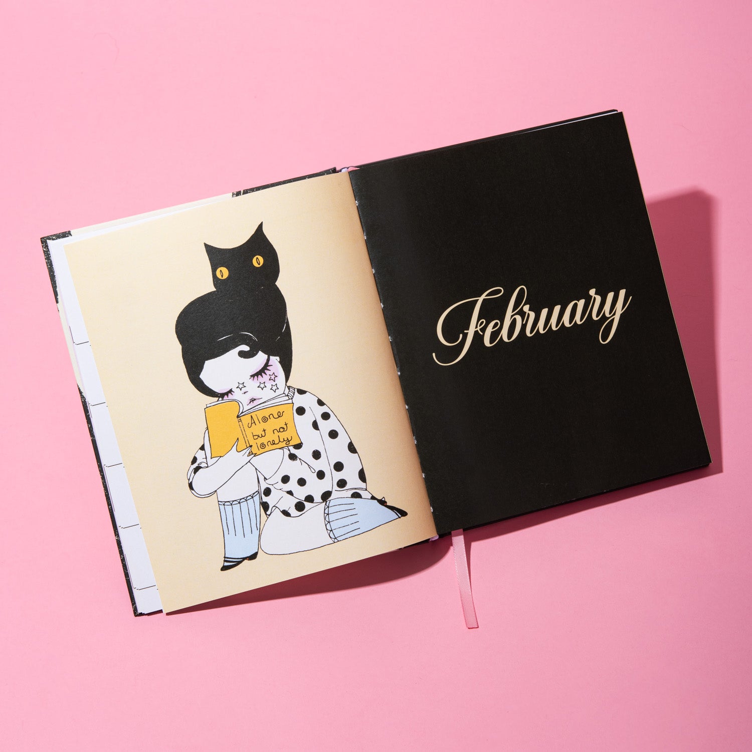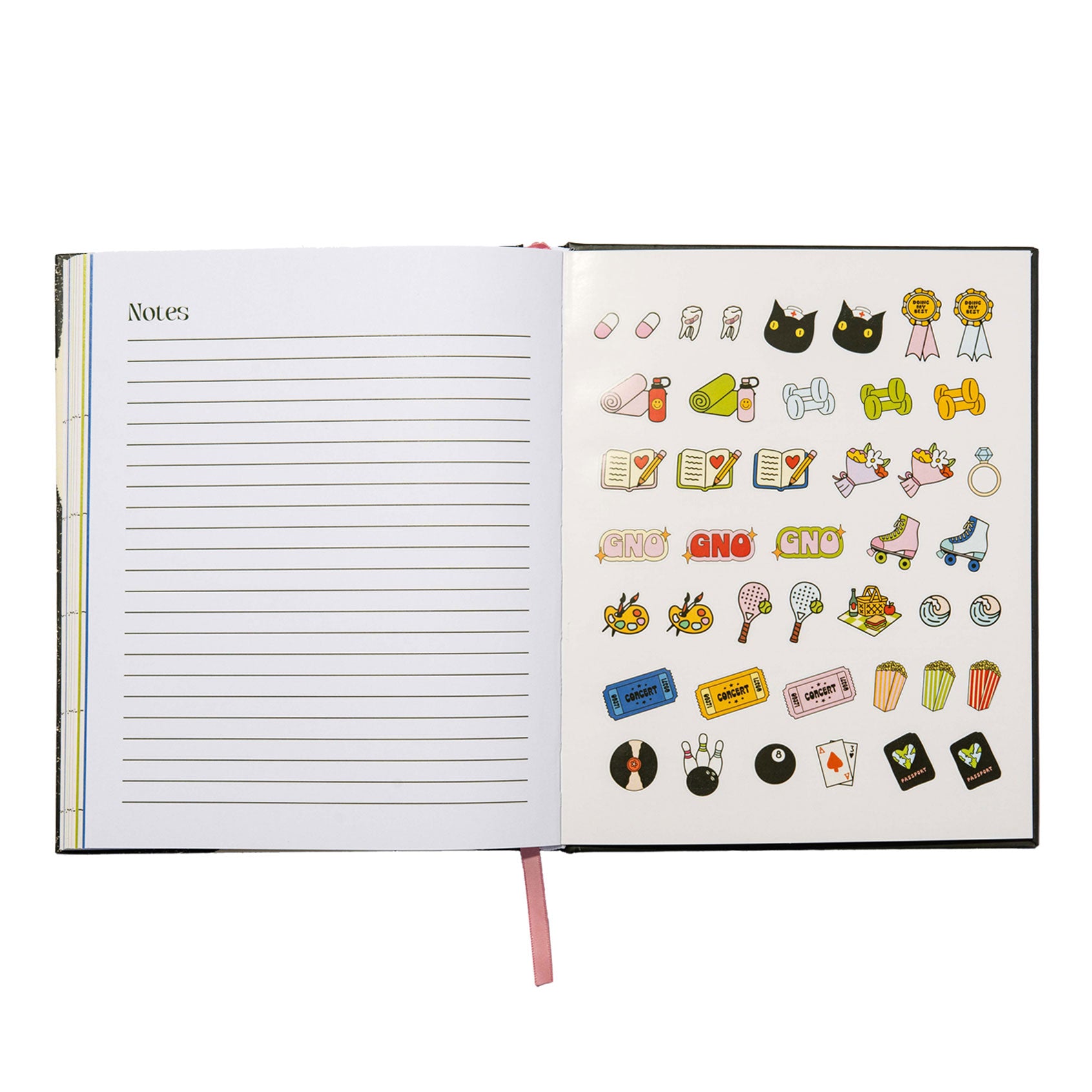 The new Valfré 2026 Gal With A Plan hard cover planner includes original Valfre artwork for each month of the year, stickers, a monthly and weekly calendar and extra pages for notes.