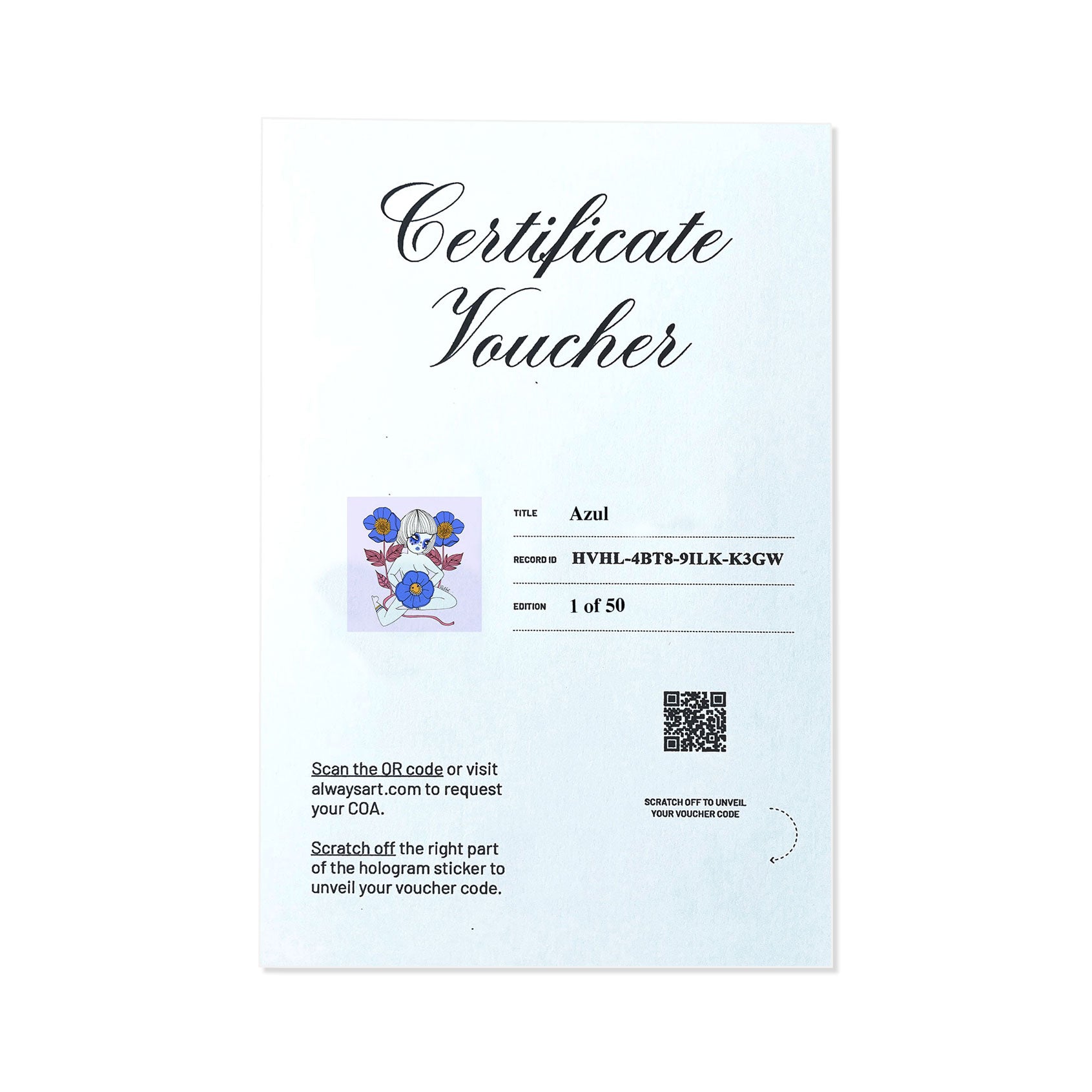 Each print will be numbered and will include a voucher to register your print and receive your official Certificate of Authenticity by Always Art.