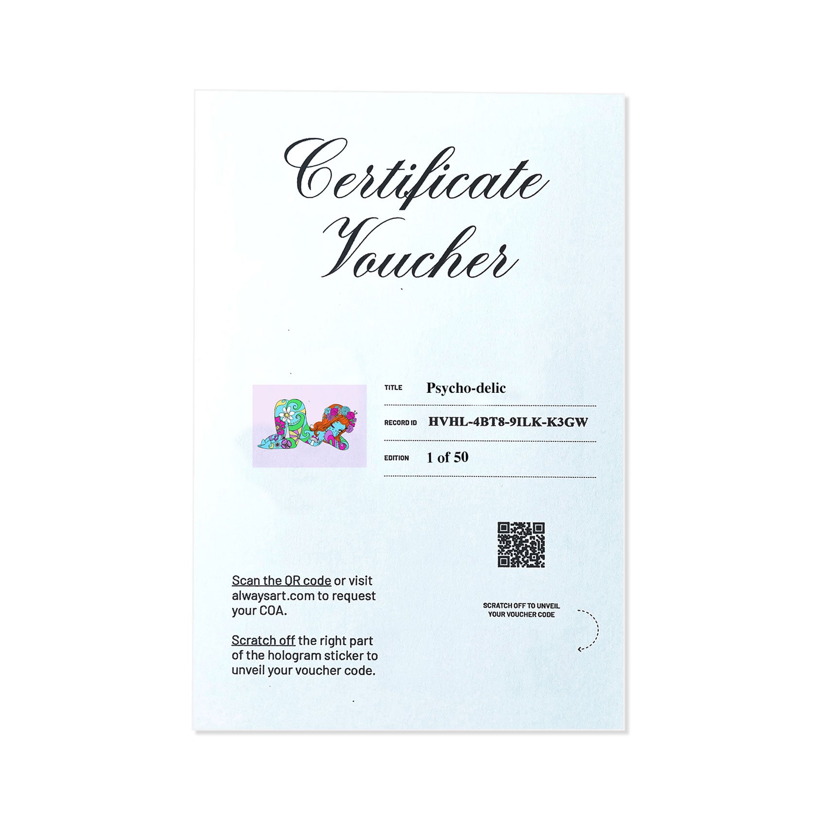 Each print will be numbered and will include a voucher to register your work and receive your official Certificate of Authenticity by Always Art.