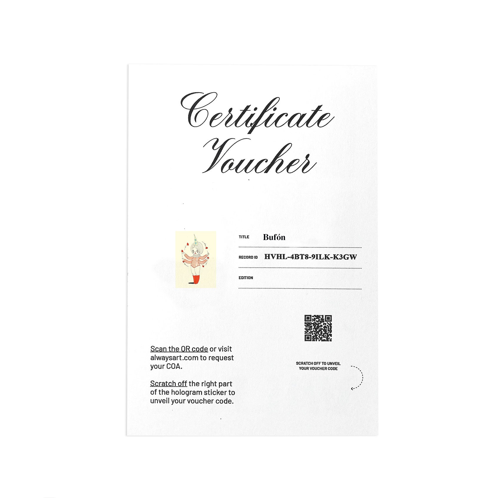 Each print will be signed, numbered and will include a voucher to register your work and receive your official Certificate of Authenticity by Always Art.