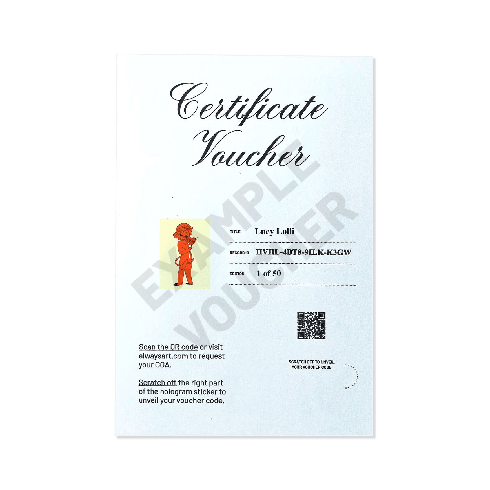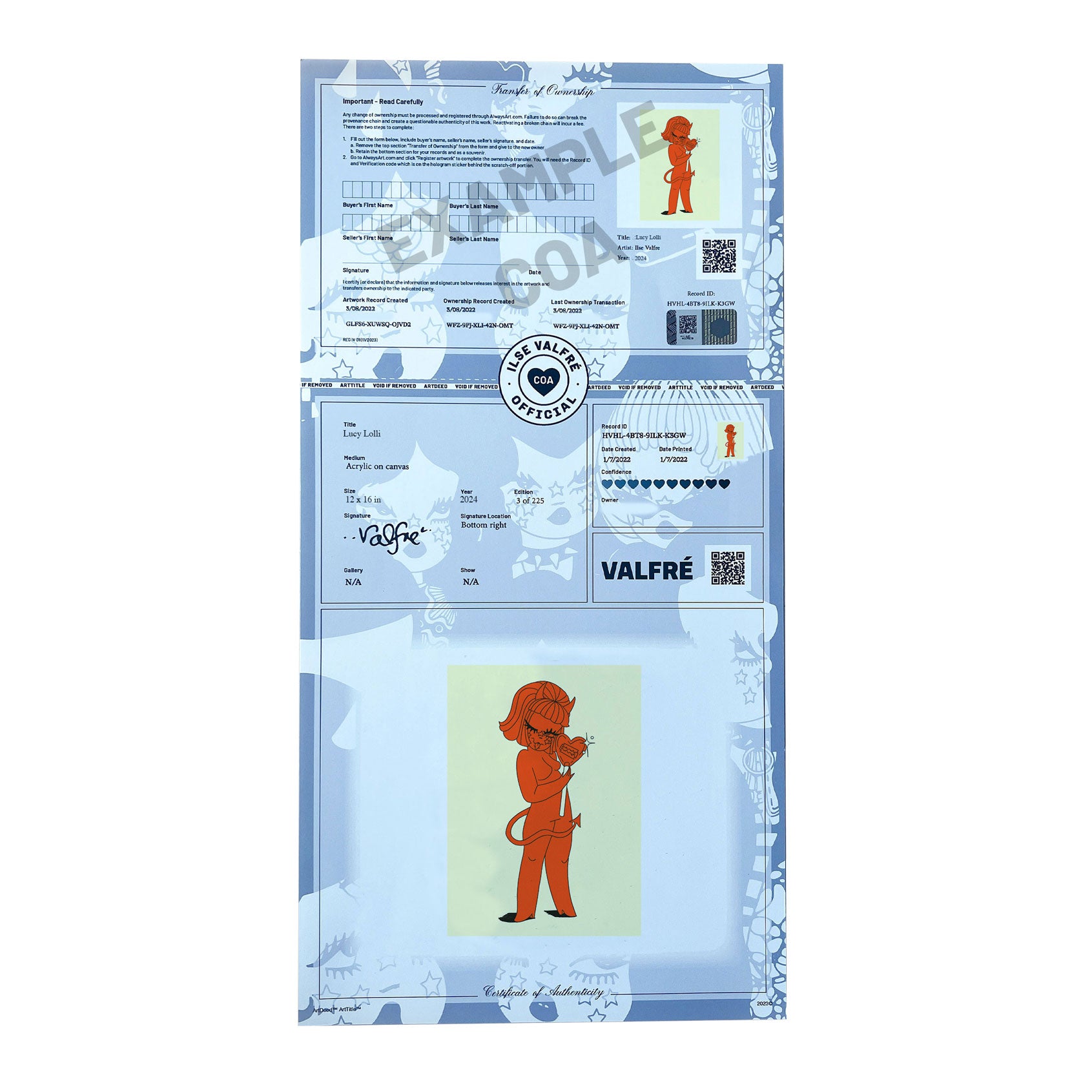 Each print will be hand-signed, numbered, embossed and will include a voucher to register your work and receive your official Certificate of Authenticity by Always Art.